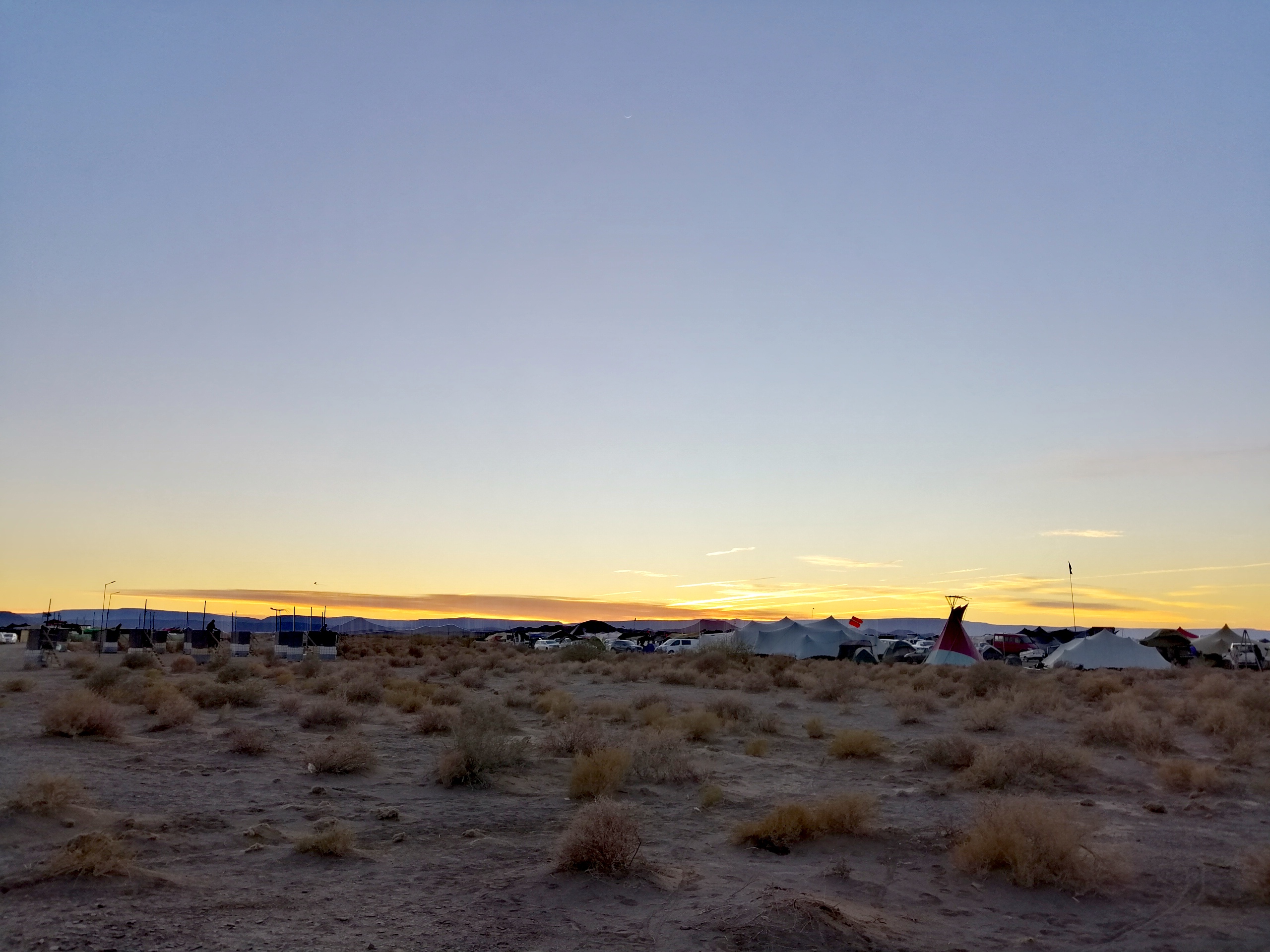 So I pushed my tentflap aside, and emerged with a suncrown proudly donned, a bandana or two, a scarf, and some other accessories to change into my first divine desert guise… but… I had to break the glory of the moment by going back a couple of times to readjust all the pieces.